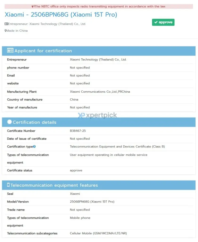 Penemuan Xiaomi 15T Pro dengan nomor model 2506BPN68G di sertifikasi NBTC Thailand adalah langkah penting dalam proses peluncurannya.