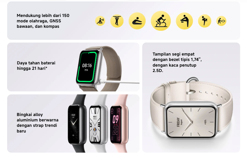 Dari sisi desain, Smart Band 9 Pro tampil dengan balutan frame aluminium yang solid dan kaca 2.5D yang melengkung halus di sisi layar. Pilihan strap pun cukup beragam, mulai dari bahan TPU yang sporty, kulit untuk tampilan elegan, hingga strap magnetik yang praktis. Anda bisa menyesuaikan tampilannya sesuai suasana, apakah sedang olahraga atau ke acara semi-formal.